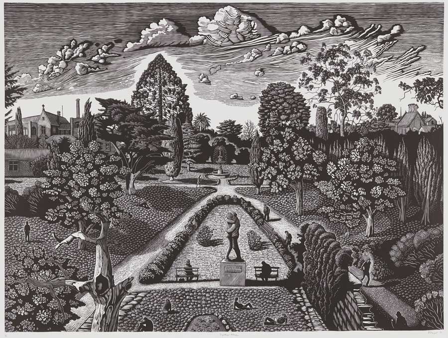 David Frazer’s artwork explores the themes of truth, love, despair and the emotional and fragile state of the human condition. With his characteristic imagination and wit, David often depicts rural scenes with a raw emotion at its core. His prints are highly detailed and his stage can be either dense or sparsely inhabited, with the occasional character seeming lost, as if unsure of his role in a changing world. These images are often informed by thoughts of something better or nostalgic memories of a time past. Ironically, their abandonment, alienation and longing is sometimes invested with ambiguity, slight optimism and wry humour.