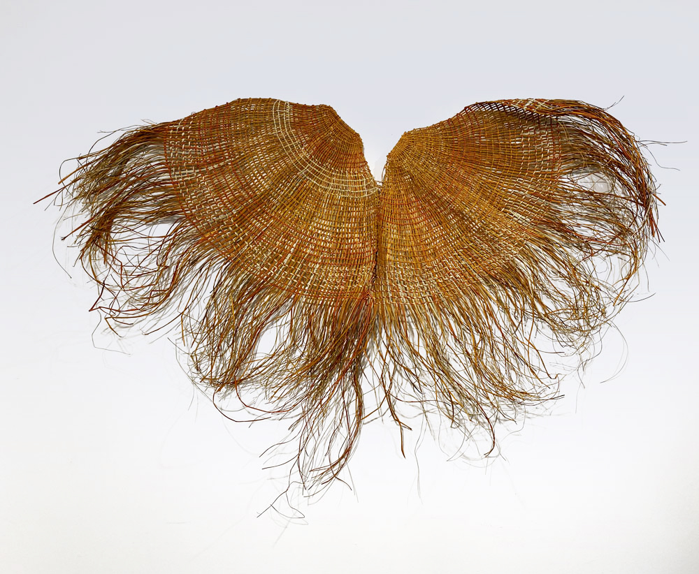 Bula’bula Arts, located in Ramingining in North East Arnhem Land, is one of Australia’s most significant art centres and has a core objective to preserve and foster Yolngu culture. The women of Gurrwiliny, the Arafura wetlands in the surrounding area, use pandanus, sandbark and kurrajong fibres, spun and subtly coloured with natural dyes, to create exuberant and elegant pieces. The women’s fine techniques give rise to a variety of sculptural forms and textures which lay witness to the long and powerful cultural continuity in the region.
