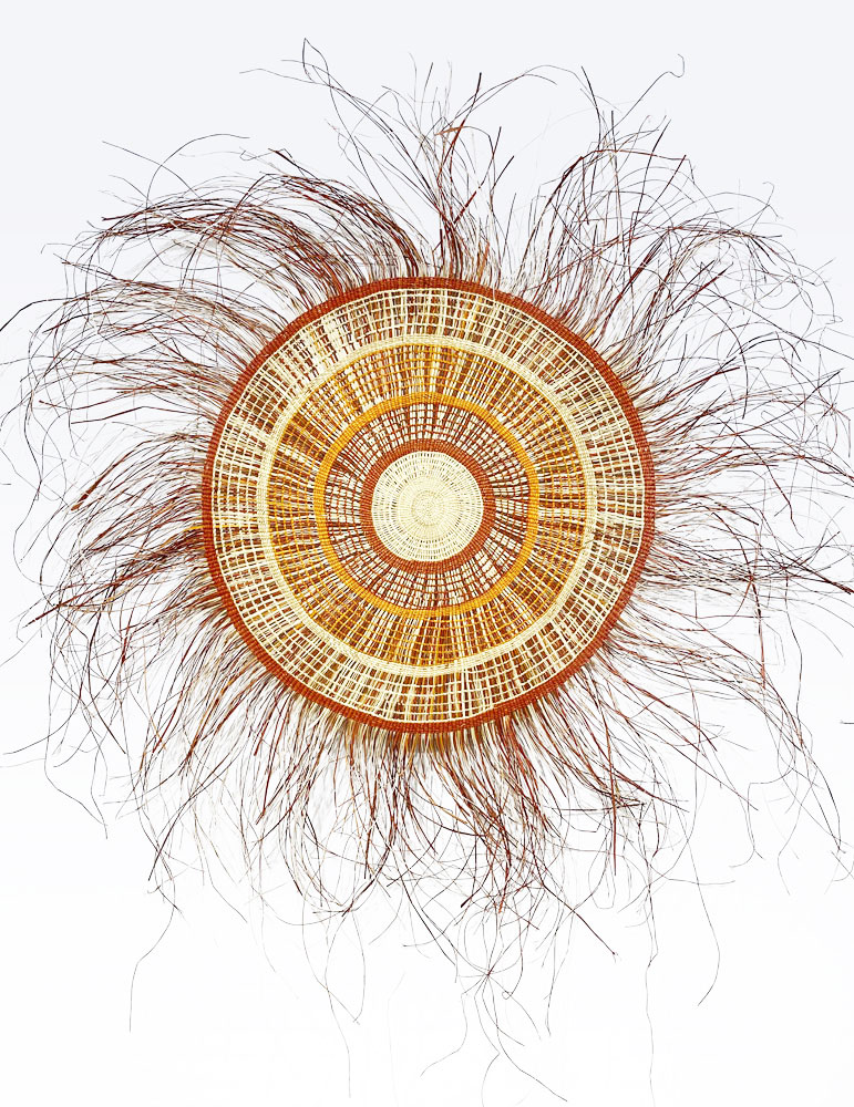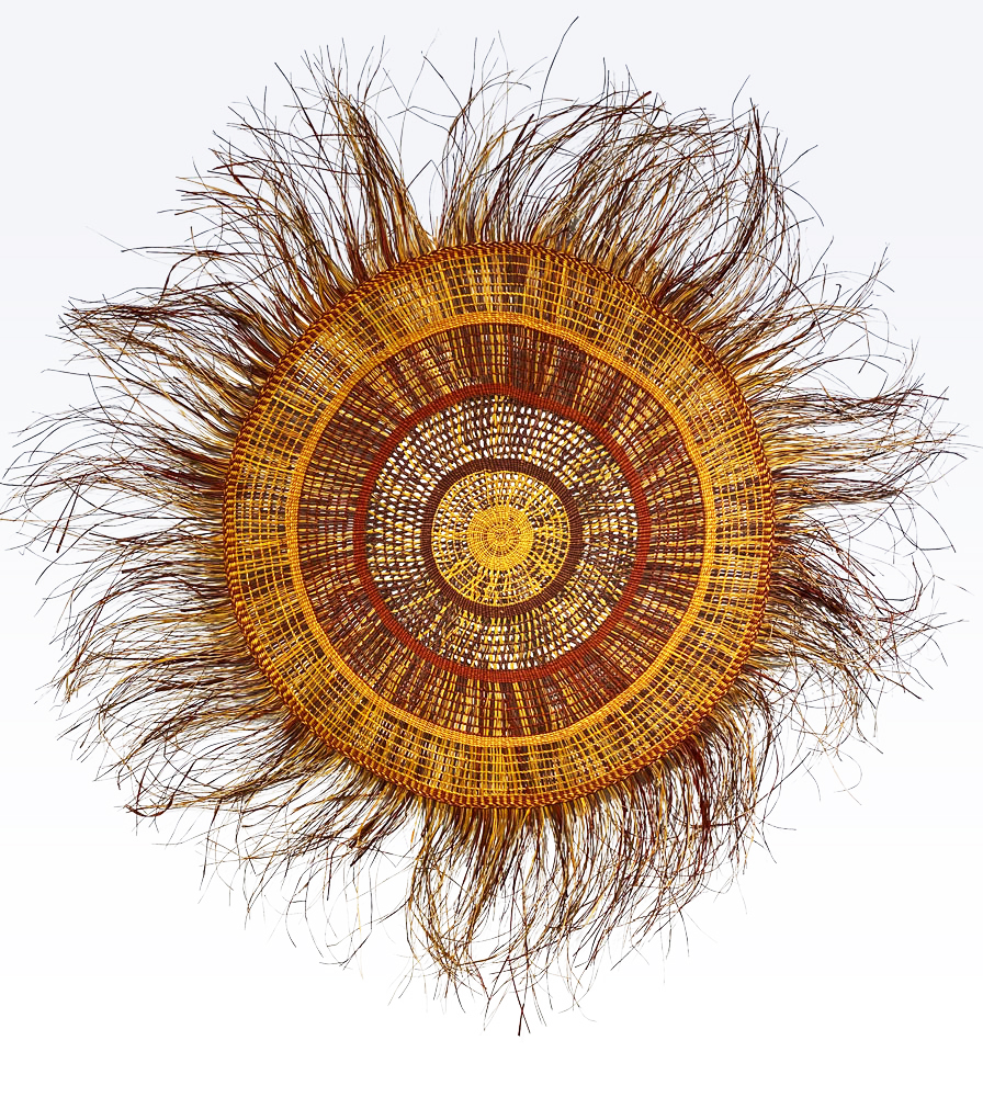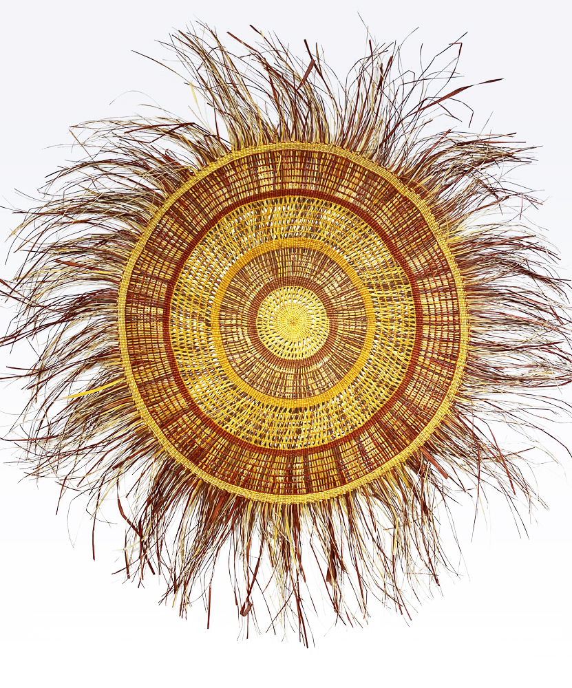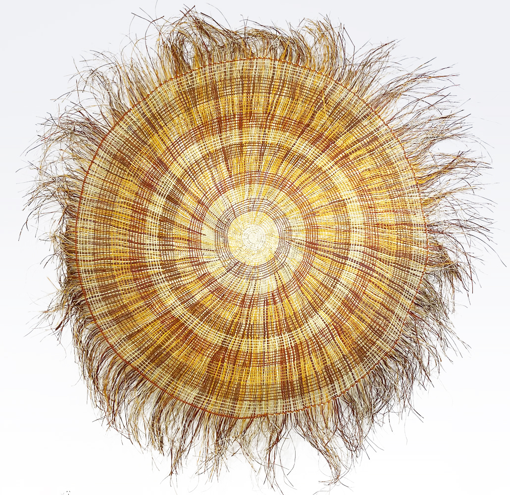 • 2. $1,200 Julie Djulibing Malibirr - Woven mat, pandanus and natural dyes, 93cm diam. (inner), 166cm diam. (outer)