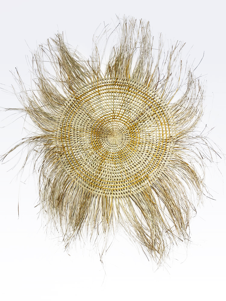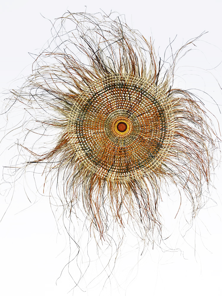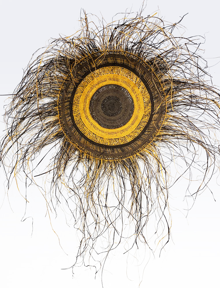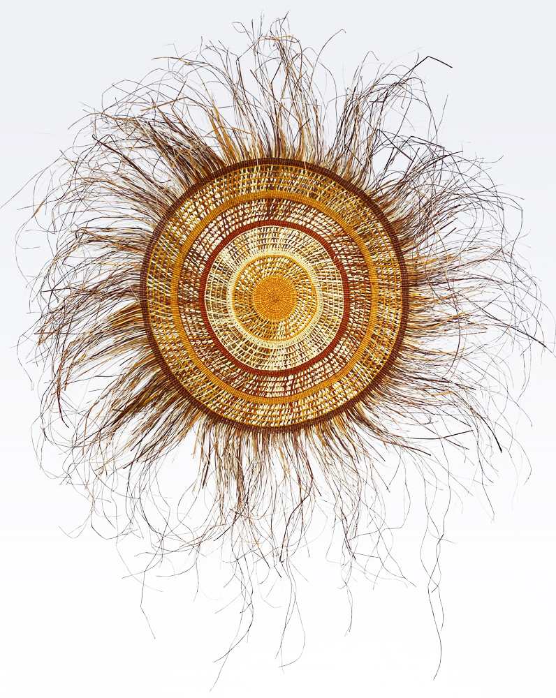 • 2. $1,200 Julie Djulibing Malibirr - Woven mat, pandanus and natural dyes, 93cm diam. (inner), 166cm diam. (outer)