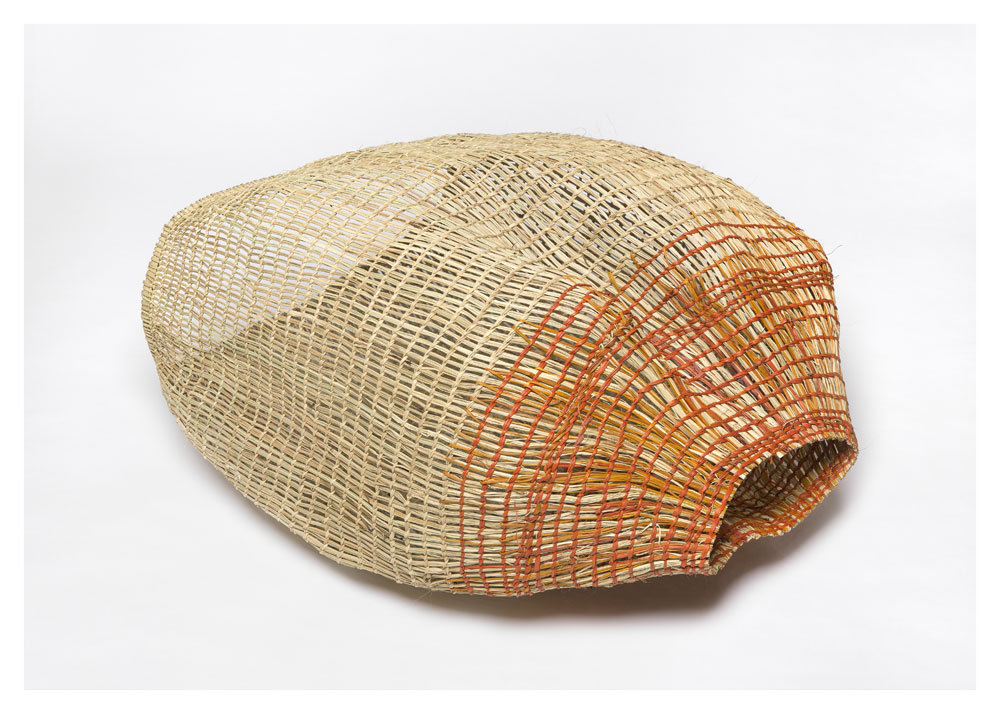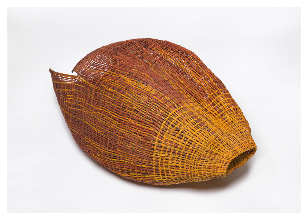 • 33. $3,200 Mary Dhapalany - Batjbarra (scoop), pandanus and natural dyes, 35.1 x 62.1 x 53.7cm