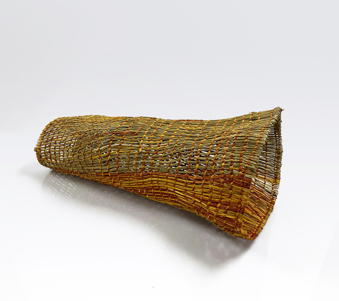 • 12. $680 Mary Dhapalany - Fish trap, pandanus, 20.5 x 50 x 22.5cm