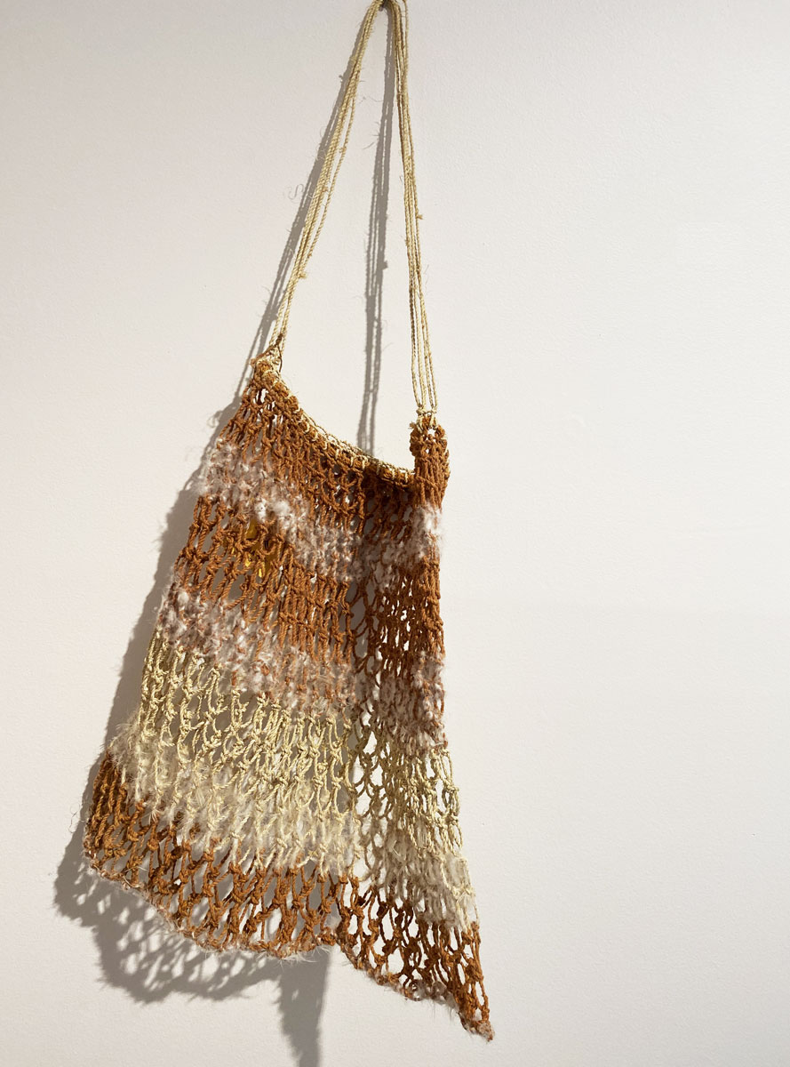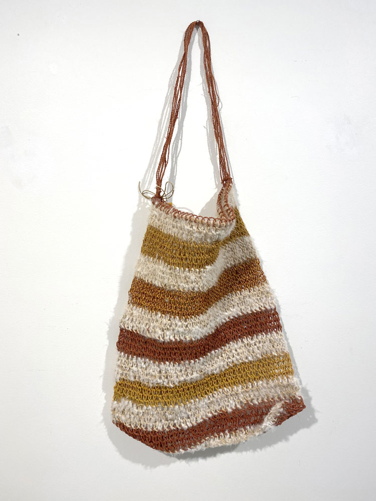 • 18. $850 Margaret Djarrbalabal Malibirr - Djerrka (String bag), kurrajong and natural dyes, 33 x 30cm
