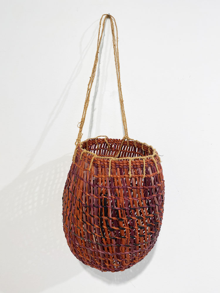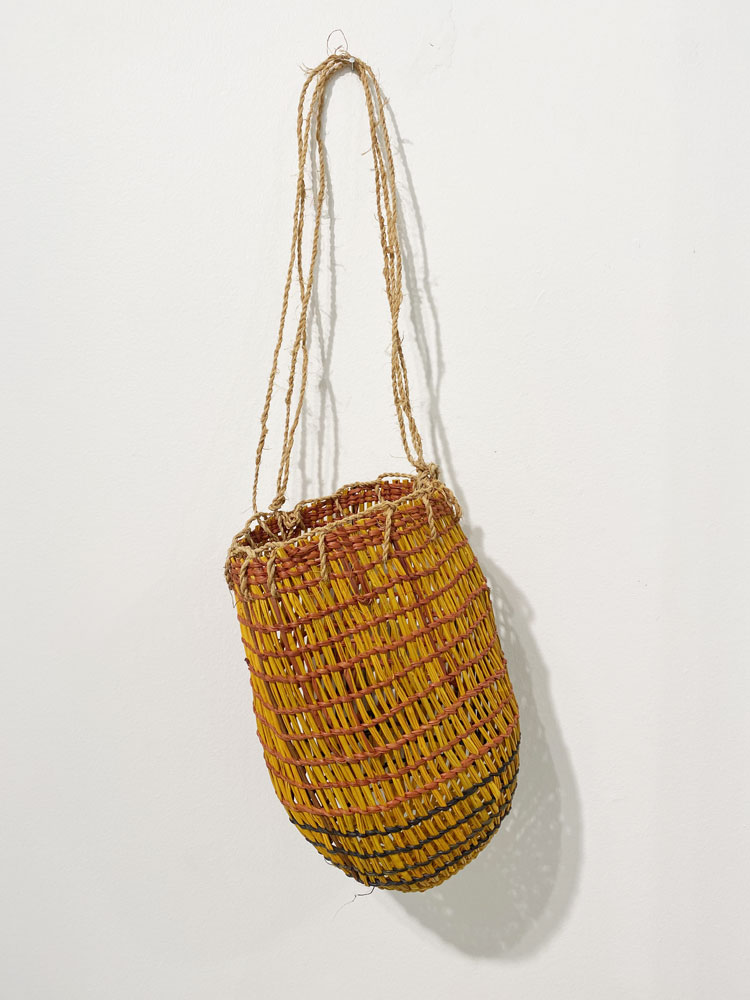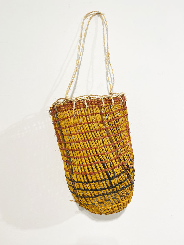 • 6. $3,200 Mary Dhapalany - Batjbarra (scoop), pandanus and natural dyes, 35.5 x 62.1 x 53.7cm