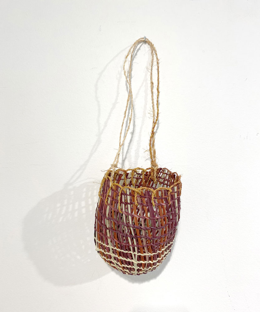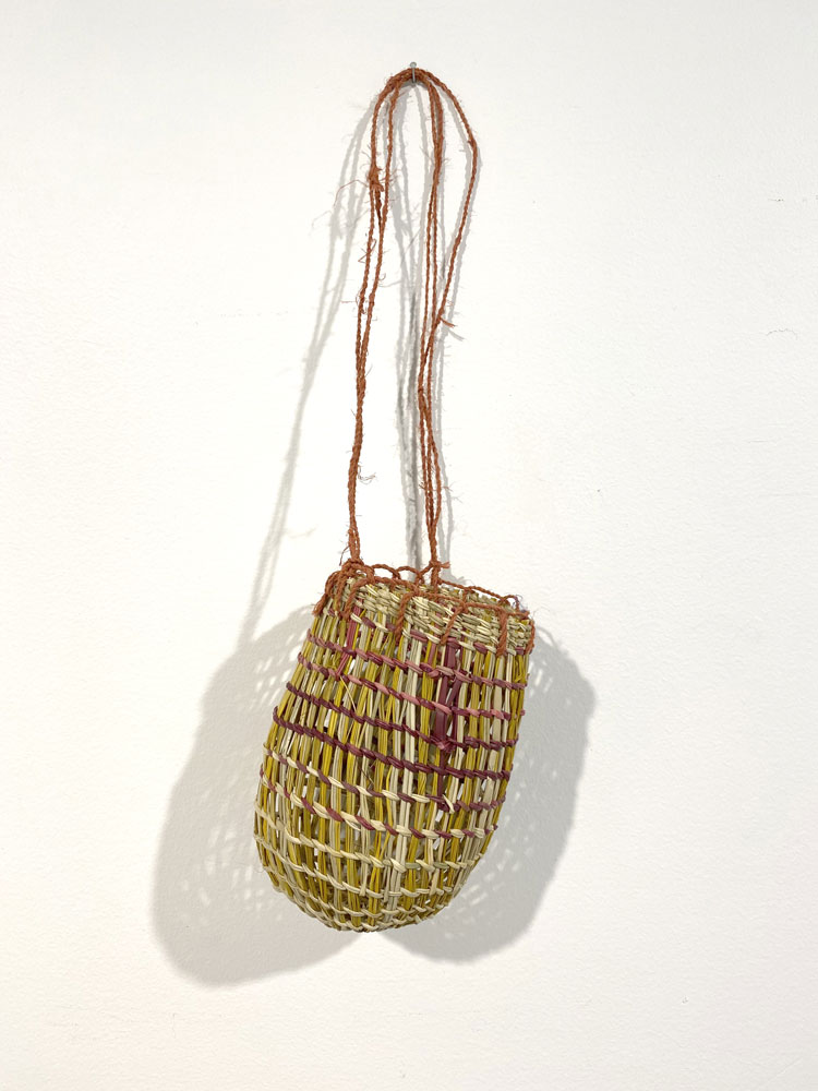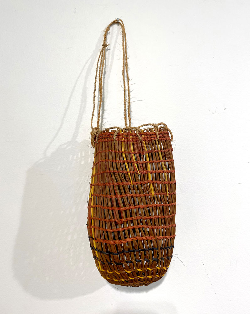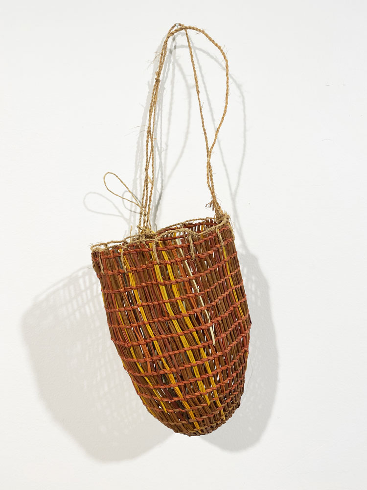• 25. $280 Mary Dhapalany - Mindirr (dilly bag), pandanus and natural dyes, 21 x 12 x 12cm
