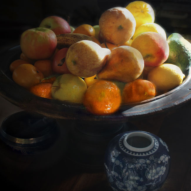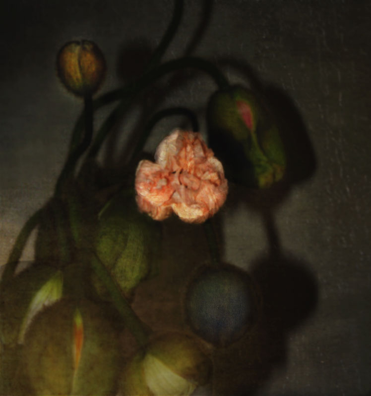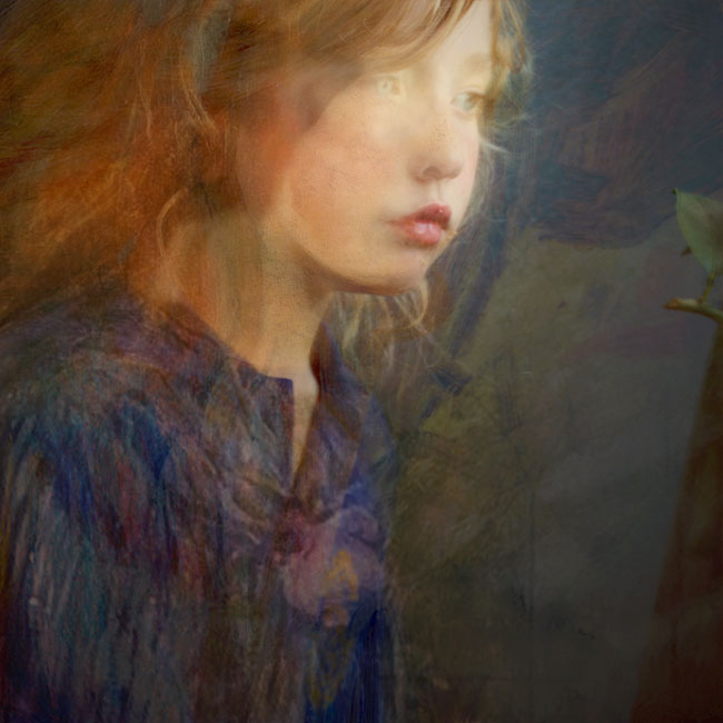 In a departure from her last exhibition, Sophia turns away from the land, sky and sea and looks to familiar and personal subjects for the inspiration for her new body of work, ‘nostalgia’. As she says of the exhibition, “the portraits in ‘nostalgia’ were born from a feeling of both nostalgia and longing… longing to hold onto and freeze this time. In a strange way, there is also a longing to be a child again, to do and see things as I did.” Sophia’s printmaking process of layering images and merging forms, seamlessly achieved using digital technology, allows her to create the desired mood and expression. Many of the works in this exhibition contain qualities reminiscent of paintings from art history. As Marguerite Brown, author and curator notes; “In ‘Yumi’, the girl’s quasi-profile pose and pale translucent skin against the vivid blue of her jacket may call to mind the artist Vermeer. Yet it is the flowing tendrils of hair by Renaissance master Botticelli that leave a barely perceptible shadow along Yumi’s brow.” Each portrait is paired with a still life that also holds significance to Sophia and her life, creating a ‘joint’ portrait. The objects chosen for the still life are carefully considered with their aesthetic and symbolic qualities referencing the paired portrait. These works complement each other yet retain their individual strength with the frames created specifically for this exhibition. Referencing a classical Dutch framebut with a modern take of simplified lines and clean edges, the frames emphasise Sophia’s nostalgia for the past.All of her works contain tenderness and depth and capture a sense of wonder that her work has become known for.