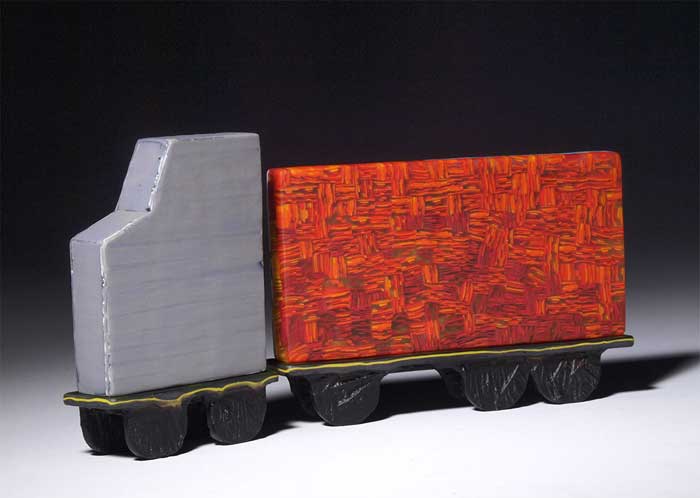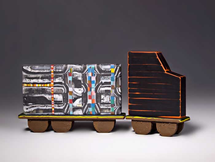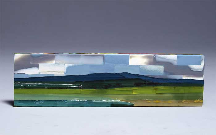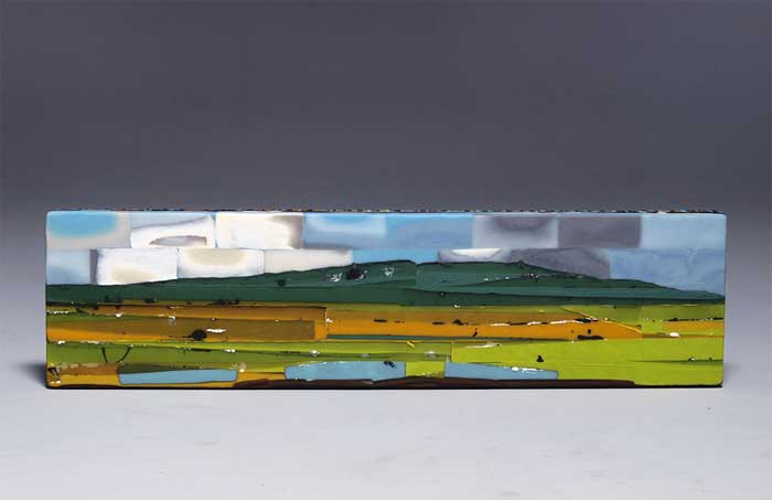 Brenden Scott French has earned a reputation as one of Australia’s most innovative and thought-provoking artists working in glass. Human behaviour, character and narrative are the foundations of exploration in Brenden’s work. His kilnformed sculptures and wall pieces are carefully layered and assembled to develop pattern and form with this physical process reflecting our proclivity to turn stories of personal and social history into grand, national narratives. Careful consideration of medium and technique is a characteristic of Brenden’s work, with a lively interplay between formal technical elements and gestural, expressive painterly surfaces. He enjoys the immediate and spontaneous nature of glass as a medium to work with. As Brenden notes, “in the real and in the imaginary, my work has patiently evolved. As my understanding of the material develops so too does my relationship with the world.” Brenden’s recent “Predator” and “Cargo” series portray his concern for environmental sustainability and the narratives of social and political commentary on environmental change, consumerism and resource management.