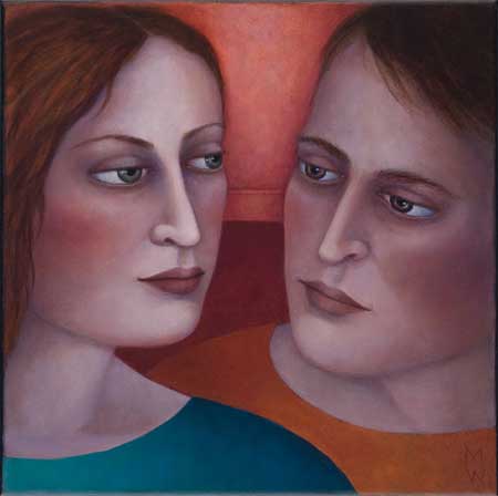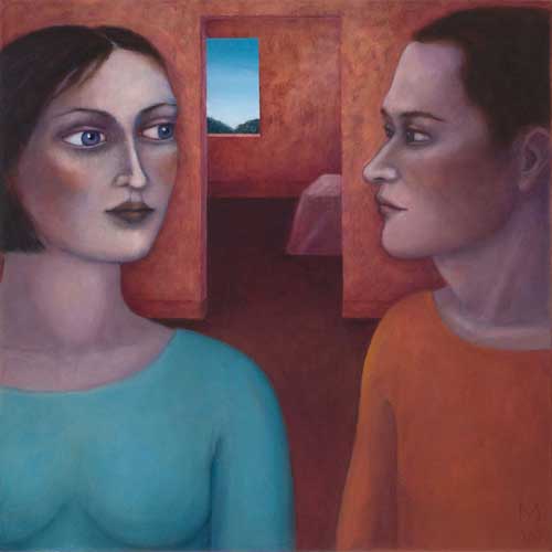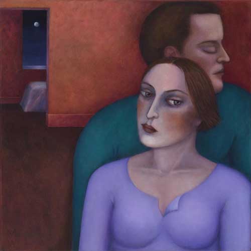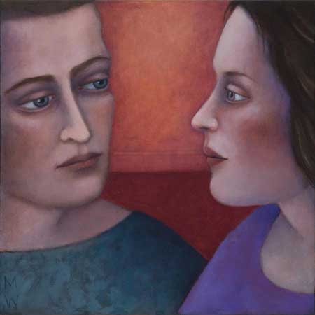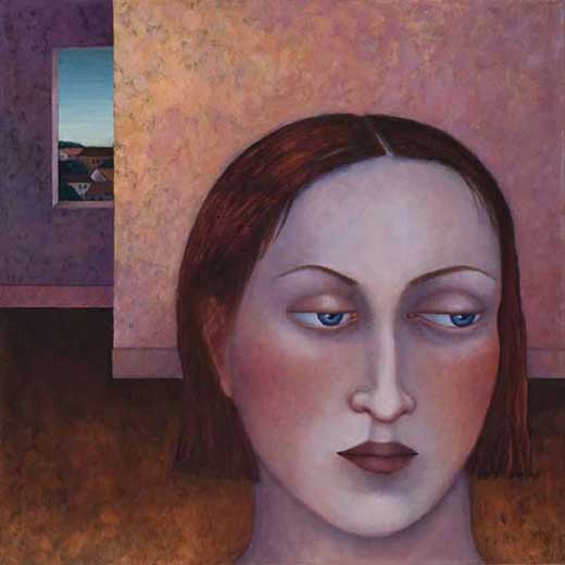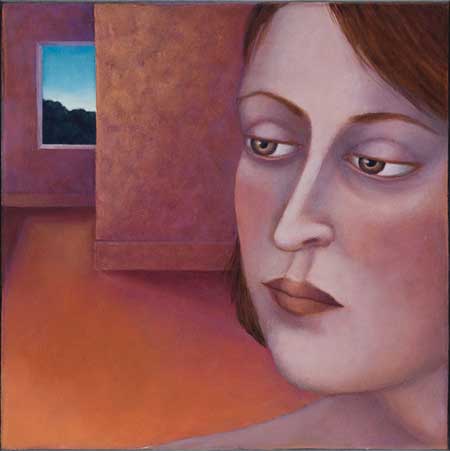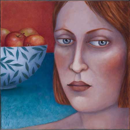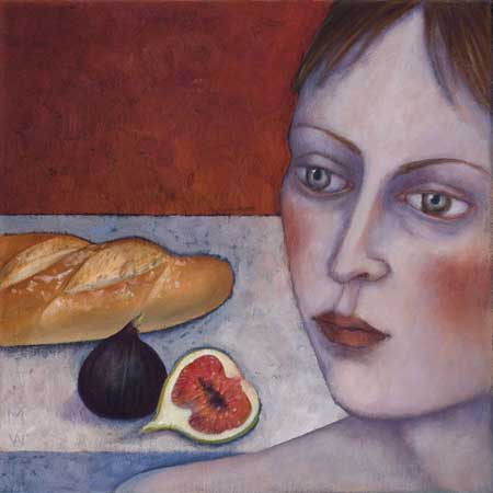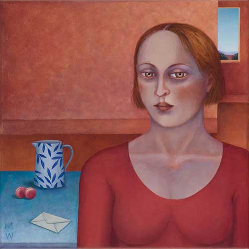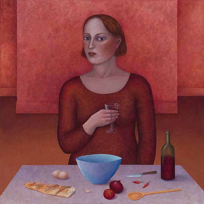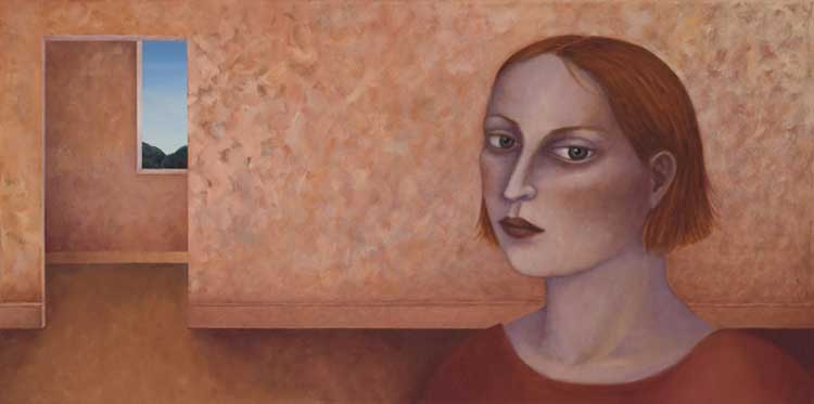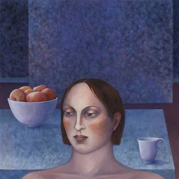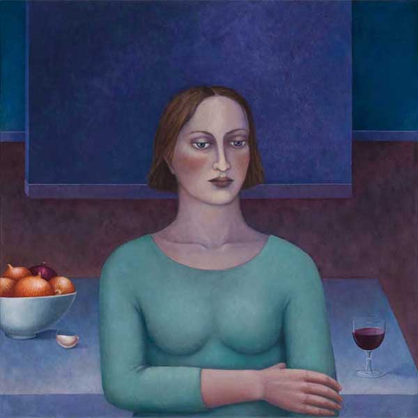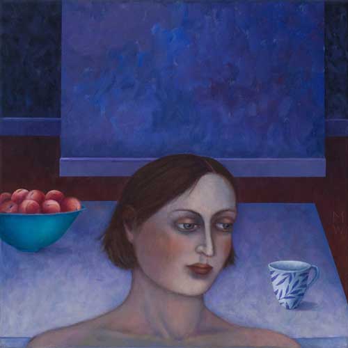 Madeleine Winch’s most recent body of work consists of paintings drawn from her personal observations of human behaviour and her own deeply felt experiences. Her beautifully rendered portraits of figures set in sparse domestic interiors provide an atmosphere where a secret inner world is revealed. Immersed in silent thoughts and feelings, capturing a moment in time, her figures either reflect on the past or contemplate the future. Working simultaneously on several canvases at once, Madeleine develops her works slowly over a number of months using a somewhat predetermined palette which subtly changes as the works grow and evolve. Madeleine’s works on paper develop more spontaneously using a variety of wet and dry mediums including gesso, charcoal, watercolour and pastel. The subtle variations in expression of her figures engage the viewer; the characters communicating their thoughts and emotions via their transfixing gaze. Positioned within a kitchen or living space, sometimes with everyday items such as bowls of fruit and kitchenware, her leading female figure often seems to be somewhat removed from her surroundings, seemingly in search of something beyond her everyday life.
